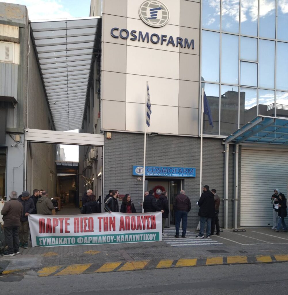 ΔΕΛΤΙΟ ΤΥΠΟΥ Σήμερα πραγματοποιήθηκε κινητοποίηση στην COSMOFARM με 2ωρη στάση εργασίας. Για να πάρουν πίσω την απόλυση της συναδέλφισσας μας και να μην τολμήσουν να φέρουν νέα σύμβαση εργασίας με ευελιξία και Σάββατο. Ανανεώνουμε το ραντεβού μας για την σύσκεψη που πραγματοποιούμε σήμερα στο συνδικάτο οικοδόμων Αθήνας, Βερανζέρου 1( πλ. Κάνιγγος) στις 17:00 για τους […]